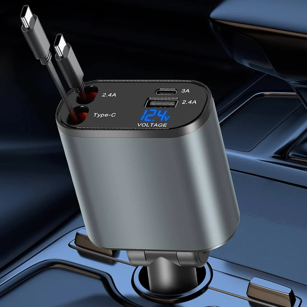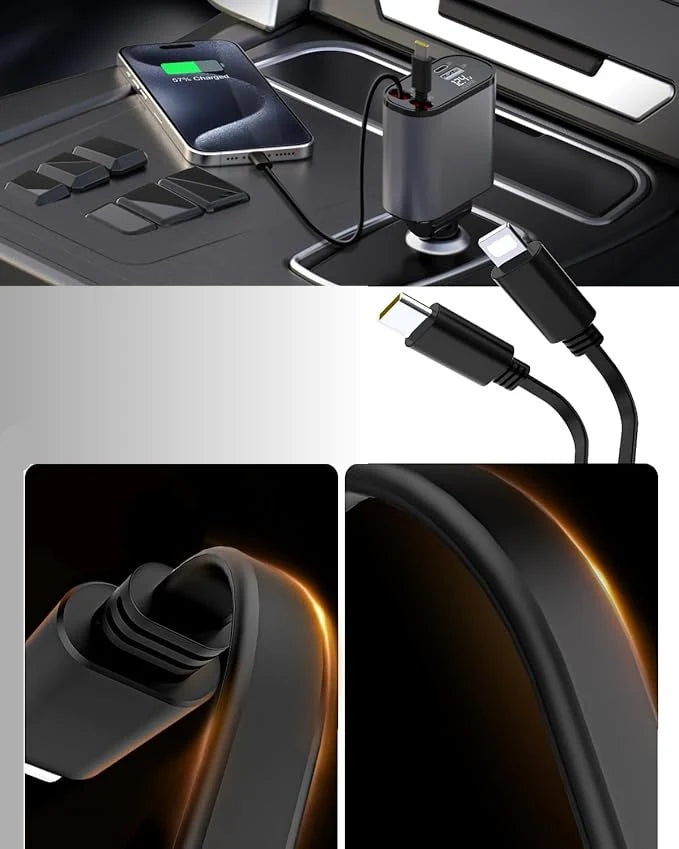 מטען חכם לרכב בעל שני כבלים,type c ו lightning. המטען שלנו יבטיח לכם טעינה מהירה ועוצמתית. עם הספק של עד 120W, מסך דיגיטלי להצגת המתח בזמן אמת וטכנולוגיה מתקדמת למניעת התחממות.